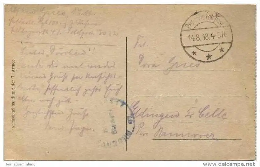 Sissonne - Rathausstrasse - Feldpost (E15255) gel. 1918