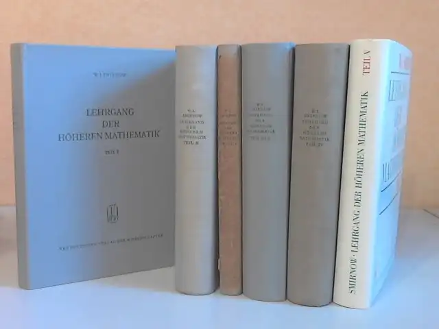 die Seiten und die Einbände sind altersbedingt gebräunt, fleckig, Umschläge mit stärkeren Bestoßungen, die Bäde haben unterschiedliche Umschläge, aus dem Inhalt: BAND 1: Veränderliche Größen und funktionale Abhängigkeit - Begriff der Ableitung und seine Anwendungen - Begriff des Integrals und seine Anwendungen - Reihen und ihre Anwendung auf die angenäherte Berechnung von Funktionen - Funktionen mehrerer Veränderliober - Komplexe Zahlen. Anfangsgründe der höheren Algebra und Integration von Funktionen - Literaturhinweise der Herausgeber. BAND 2: Gewöhnliche Differentialgleichungen - Lineare Differentialgleichungen und ergänzende Ausführungen zur Theorie der Differentialgleichungen - Mehrfache Integrale und Kurvenintegrale. Uneigentliche Integrale und Integrale, die von einem Parameter abhängen - Vektoranalysis und Feldtheorie - Anfangsgründe der Differentialgeometrie - FOURIER-Reihen - Partielle Differentialgleichungen der mathematischen Physik. BAND 3: Determinanten und die Auflösung von gleichungssystemen - Lineare Transformationen und quadratische Formen - Elemente der Gruppentheorie und lineare Darstellungen von Gruppen. BAND 4: Anfangsgründe der Funktionentheorie - Konforme Abbildung und ebene Felder - Anwendung der Residuentheorie; ganze und gebrochene Funktionen - Funktionen mehrerer Veränderlicher und Funktionen von Matrizen - Lineare Differentialgleichungen - Spezielle Funktionen der mathematischen Physik - Die BESSELschen Funktionen - Die HERMITEschen und LAGUBRiiEsehen Polynome - Elliptische Integrale und elliptische Funktionen - Beduktion von Matrizen auf kanonische Form - Literaturhinweise der Herausgeber. BAND 5: Integralgleichungen - Variationsrechnung - Allgemeine Theorie der partiellen Differentialgleichungen - Randwertprobleme. BAND 6: Das Stieltjessche Integral - Mengenfunktionen und das Lebesguesche Integral - Mengenfunktionen. Absolute Stetigkeit. Verallgemeinerung des Integralbegriffs - Metrische und normierte Räume - Der Hilbertsche Raum - Literaturhinweise d«r Herausgeber 3l4b Antiquariat Ardelt