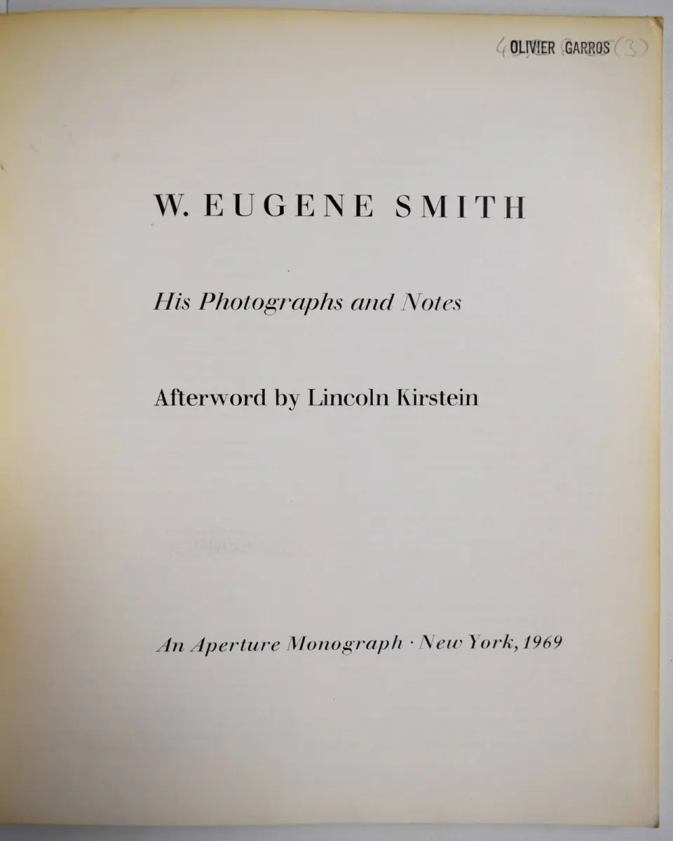 Smith, W(illiam) Eugene. His photographs and notes. Afterword by by Lincoln Kirstein. (Editor: Minor White).
