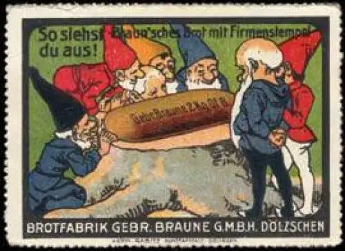 Brotfabrik Gebrüder Braune GmbH, Dölzschen, Größe/Zustand: 4x6 , guter Zustand, Original alte Reklamemarke die seinerzeit für die Werbung benutzt wurde