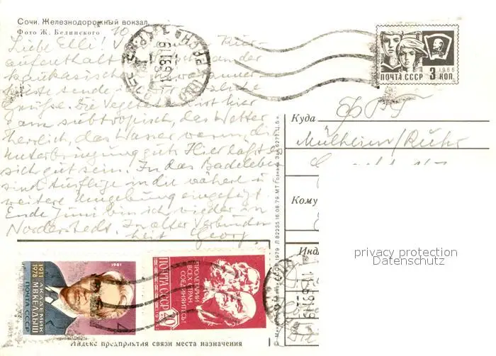 Sochi_Sotschi Bahnhof postalisch gelaufen nach 1965 Erhaltung siehe scans [DarjaD84] DarjID84
