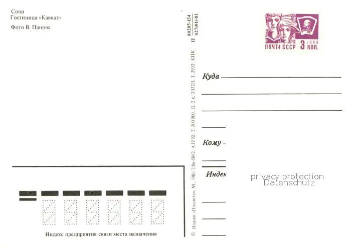 Sochi_Sotschi Hotel Kavkaz postalisch nicht gelaufen nach 1965 Erhaltung siehe scans [DarjaD84] DarjID84