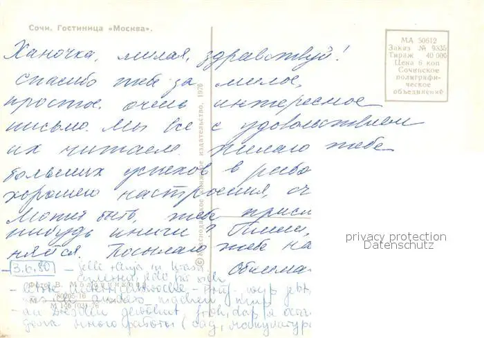 Sochi_Sotschi Hotel Moskau postalisch nicht gelaufen nach 1965 Erhaltung siehe scans [DarjaD84] DarjID84