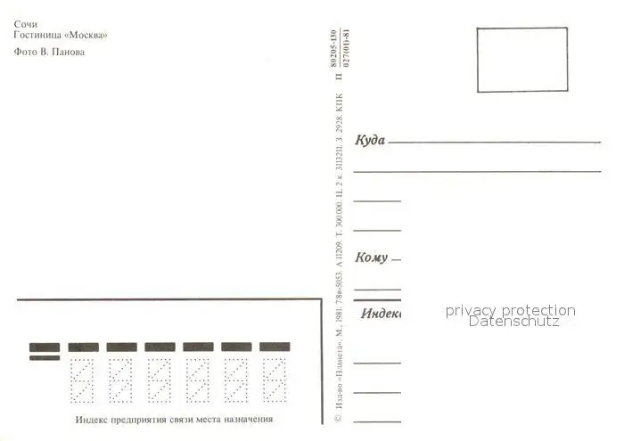 Sochi_Sotschi Hotel Moskva postalisch nicht gelaufen nach 1965 Erhaltung siehe scans [DarjaD84] DarjID84