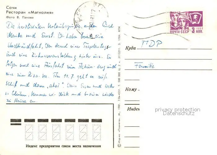 Sochi_Sotschi Restaurant Magnolia postalisch nicht gelaufen nach 1965 Erhaltung siehe scans [DarjaD84] DarjID84