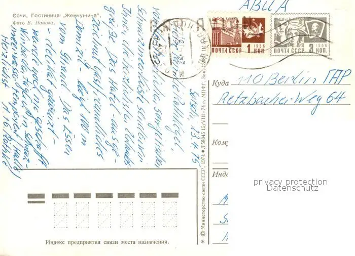 Sochi_Sotschi Zhemchuzhina postalisch gelaufen nach 1965 Erhaltung siehe scans [DarjaD84] DarjID84