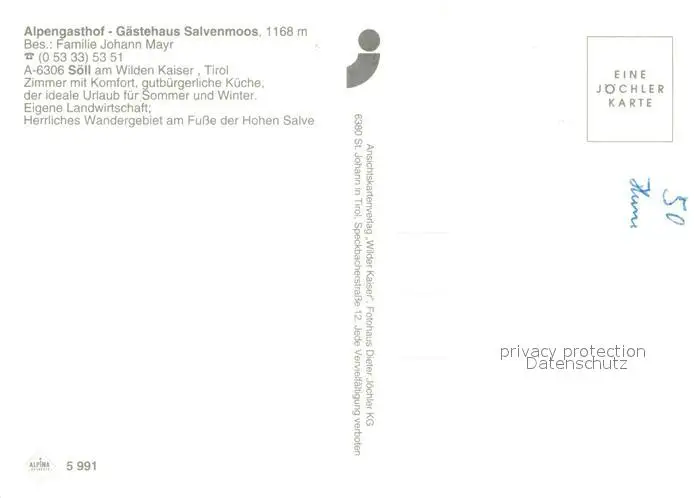 Soell_Tirol Alpengasthof Pension Salvenmoos Bergbahn Kaisergebirge Soell_Tirol postalisch nicht gelaufen nach 1965 Erhaltung siehe scans [FriedD77] Frierer