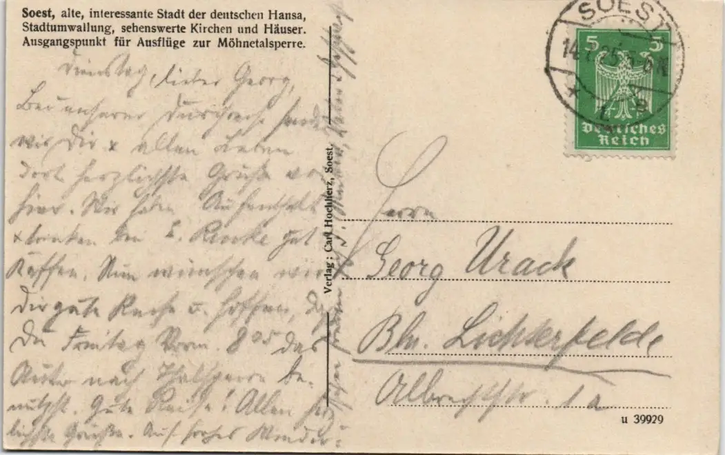 Soest Straßen Partie am Freiligrath-Haus, Kinder vor Drogerie Geschäft 1925