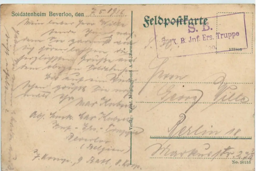 Soldatenheim Beverloo - Feldpost Infanterie Ersatz Truppe -471348