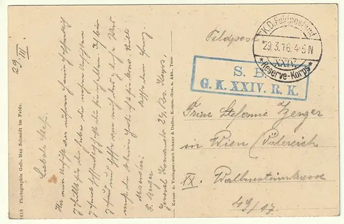 Bemerkungen: Feldpost gelaufen 1916. - Wien.