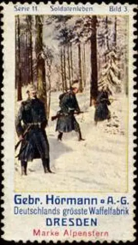 Serie 11, Bild 3, Marke Alpenstern, Deutschlands grösste Waffelfabrik, Propaganda, Größe/Zustand: 6x3 , guter Zustand, Original alte Reklamemarke die seinerzeit für die Werbung benutzt wurde
