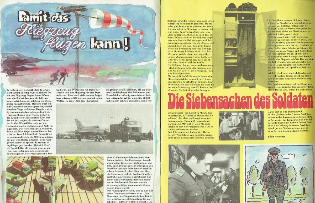 sehr guter Zustand, geringe Gebrauchs- und Alterungsspuren: Seiten sauber und ordentlich - Heft links oben und Umschlag an der Unterkante teils leicht knittrig, Kinderzeitschrift mit viel Wissenswertem und Geschichten über die NVA, Sport, Humor und Comic von Karl Fischer, Rückseite ist ein Bastelbogen, Softcover, ca. 23 x 30,5, 16 Seiten mit zahlreichen Bildern