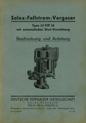 Solex Fallstrom Vergaser Type 35 FIP 20 6.1940