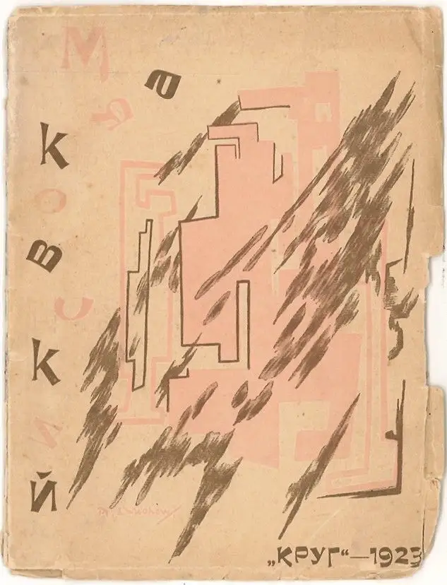 Moskva/Petersburg, Krug 1923 kl.-8°. (16, 5 x 12,5 cm.). 16 nn. Bll. Mit 8 (7 ganzseitigen) Illustrationen von M[ichail] Larionow. OBrosch. m. zweifarb. Einbandill. sign. M. Larionow. Einband leicht fleckig u. randrissig. EA.