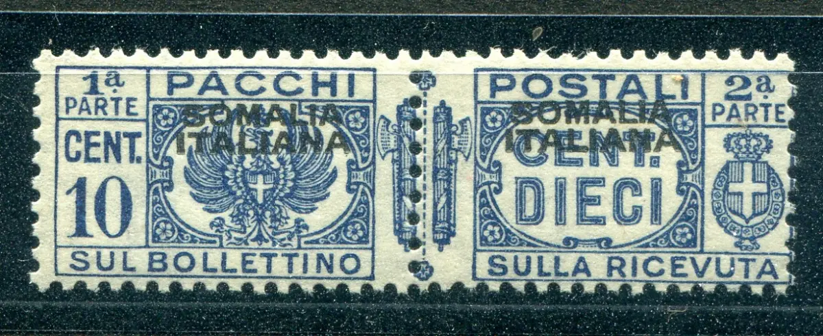 Vollgummi - Somalia - Postpakete Cent-Bündel. 10 n. 55c stark nach oben verschobener Aufdruck - Kat. euro 165 n. 1021/L