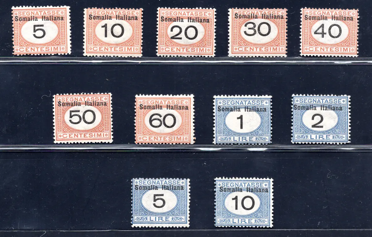MNH - Vollgummi - - Somalia - Steuermarken Nr. 41/51 Ziffernserie in schwarz mit italienischem Münzwert - perfekt sehr frisch mit Vollgummi von guter/diskreter Zentrierung Cod. 2656/WEB
