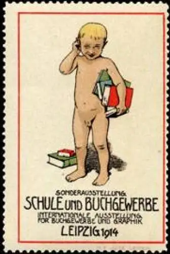 Internationale Ausstellung für Buchgewerbe und Graphik (Grafik), Kind, Junge, Größe/Zustand: 6x4 , guter Zustand, Original alte Reklamemarke die seinerzeit für die Werbung benutzt wurde