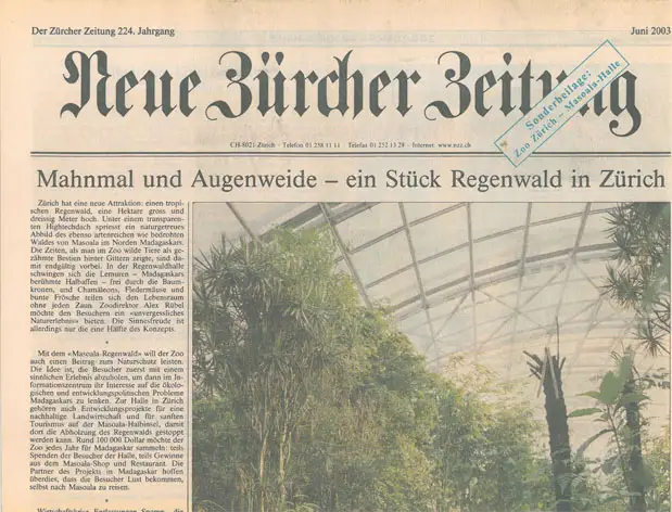 Sonderbeilage: Zoo Zürich - Masoala-Halle Juni 2003.