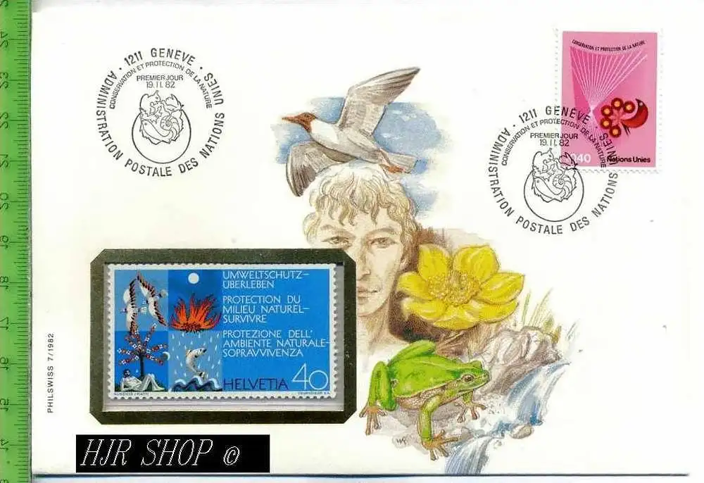 Sonderbrief \\\\\\\"Umweltschutz\\\\\\\" mit der UNO -Genf -Ausgabe vom 19.11.1982 (mit Ersttagsstempel) sowie einer postfrischen 40- Rappen - Sondermarke vom 21.09.1972