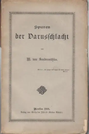 Ein Beitrag zur Diskussion um den richtigen Ort der Schlacht (im Teutoburger Wald ?) 9 n. Chr. zwischen Römern und Germanen, wobei die Frage bis heute nicht geklärt ist. Der Autor vermutet den Ort bei Aliso (römisches Kastell Haltern) bei Osnabrück, heutige Meinung neigt zu Kalkriese bei Bramsche im Osnabrücker Land. Der Autor meint sogar, dass der Hildesheimer Silberfund zum Tafelgeschirr gehörte, dass Quinctilius Varus aus Syrien mitgebracht habe. Dies ist unwahrscheinlich. Sondermühlen stand auf der Suche nach dem richtigen Ort in Korrespndenz mit Feldmarschall Moltke und steht im Bann des wieder erwachenden National-Geistes des deutschen Volkes und der gewaltigsten Spuren und Runen der deutschen Nation.