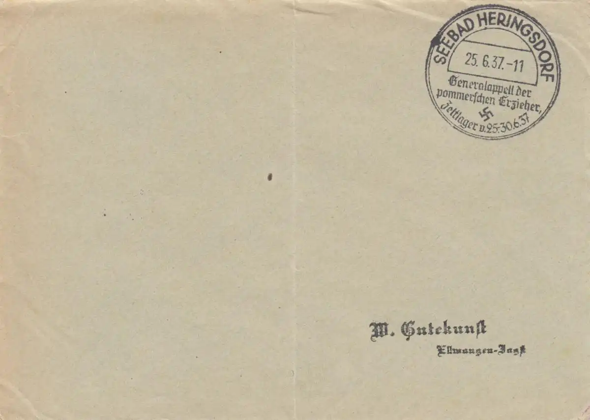 Sonderstempel 1937 Seebad Herjngsdorf, Generalappell Erzieher Pommern, Postsache