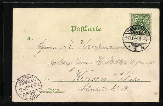alte Ansichtskarte, gelaufen 1898, Eckknick oben re., guter Zustand