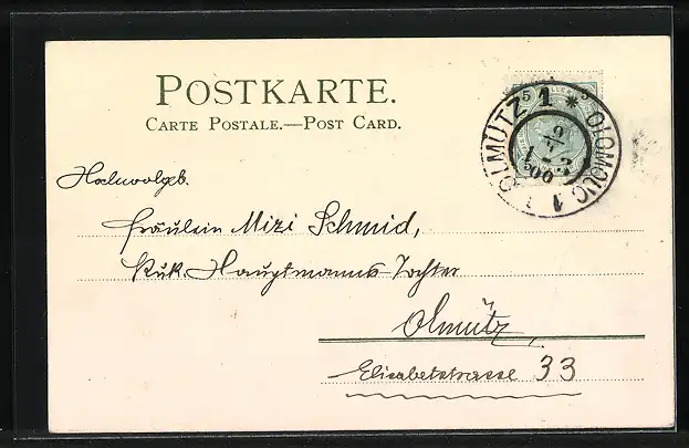 alte Ansichtskarte, gelaufen 1900, Bugspur li. vertikal, guter Zustand