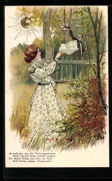Sonnenschein-AK Verliebtes Paar verabschiedet sich