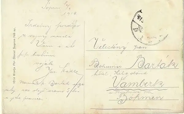Bemerkungen: Gelaufen 1916 Vamberk. Marke fehlt.