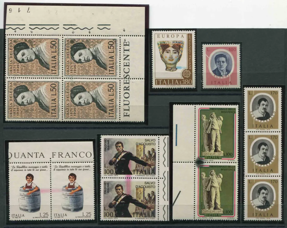 Sorte Chirurgischer Schnitt - Kleines Set Vollgummi - Chirurgischer Schnitt - Kleines Set bestehend aus neun verschiedenen Ausgaben aus der Zeit 1973/75 (auch im Streifen oder Viertel) mit deutlichen Streifen oder Farbflecken - Schönes Set Nr. 721/6