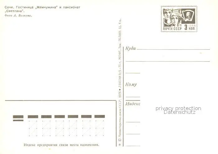 Sotschi Hotel Schemtschuschina Pension Swetlana Sotschi postalisch nicht gelaufen nach 1965 Ganzsache (eingedruckte Briefmarke) Erhaltung siehe scans [NatalD47] Ganzsache (eingedruckte Briefmarke) NataID47