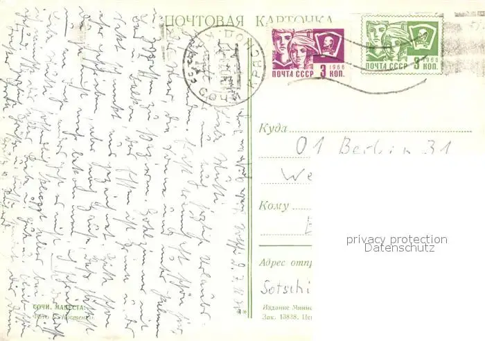 Sotschi Mazesta Sotschi postalisch gelaufen nach 1965 Ganzsache (eingedruckte Briefmarke) Erhaltung siehe scans [NatalD47] Ganzsache (eingedruckte Briefmarke) NataID47