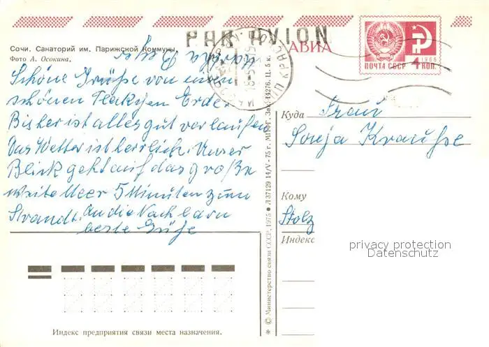 Sotschi Sanatorium Sotschi postalisch gelaufen nach 1965 Ganzsache (eingedruckte Briefmarke) Erhaltung siehe scans [NatalD47] Ganzsache (eingedruckte Briefmarke) NataID47