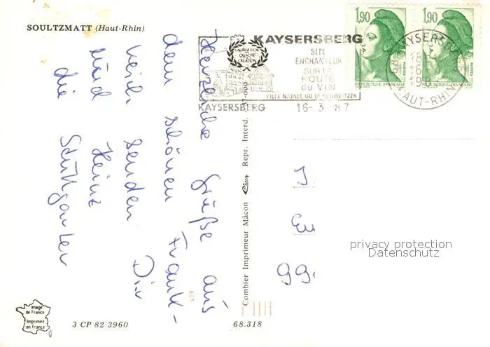 Soultzmatt Soultzmatt postalisch gelaufen 1987 Erhaltung siehe scans [LiesaD40] LiesID40