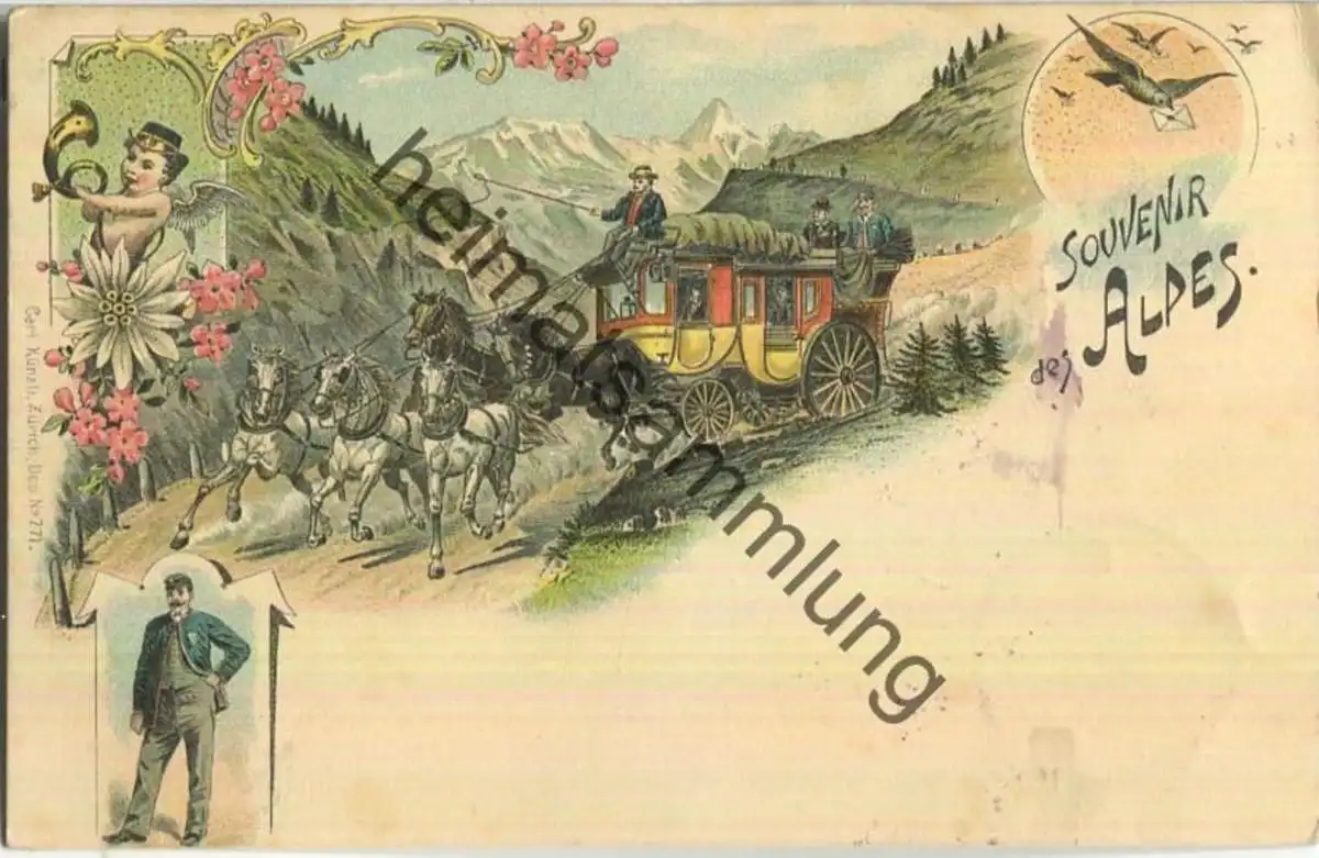 Souvenir des Alpes - Postkutsche - Verlag Carl Künzli Zürich
