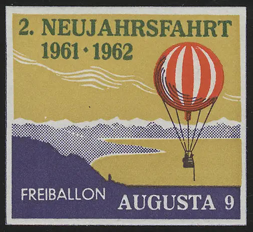 Souvenirdruck 2. Neujahrsfahrt 1961-1962 Freiballon AUGUSTA 9