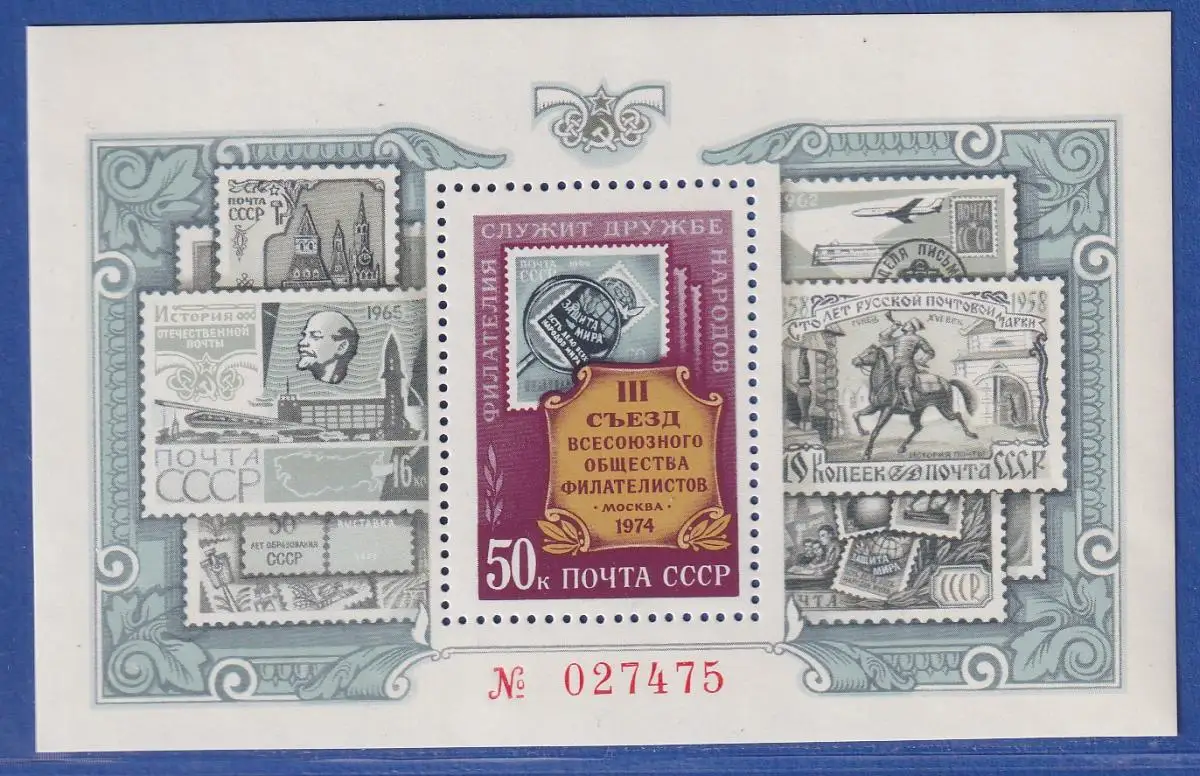 Sowjetunion 1974 Philatelistenkongress Mi.-Nr. Block 97 postfrisch **