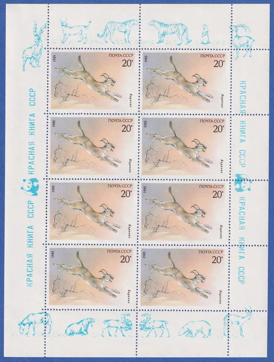 Sowjetunion 1985 Wüstenluchs Karakal Mi.-Nr. 5540 KLEINBOGEN postfrisch **