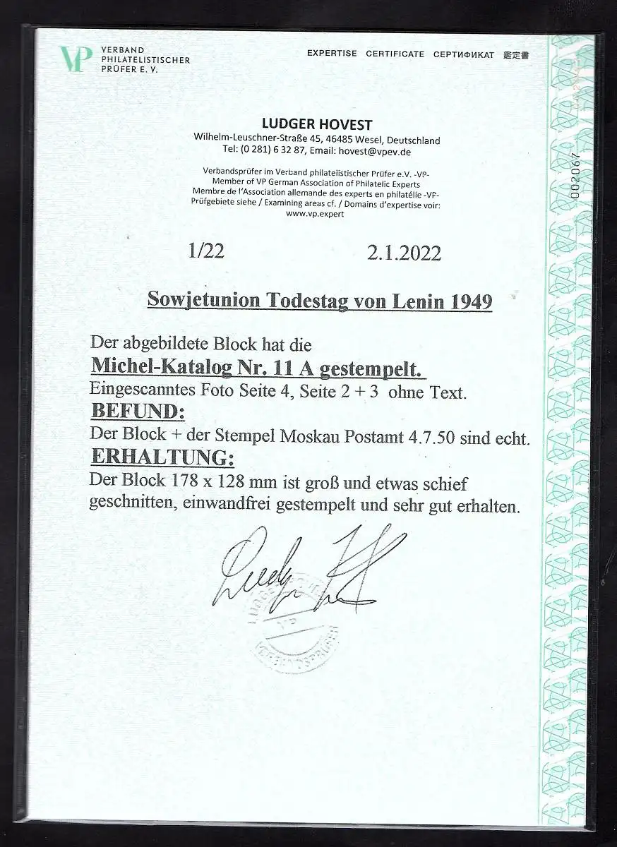Sowjetunion Block 11 A gestempelt, FA. Hovest.