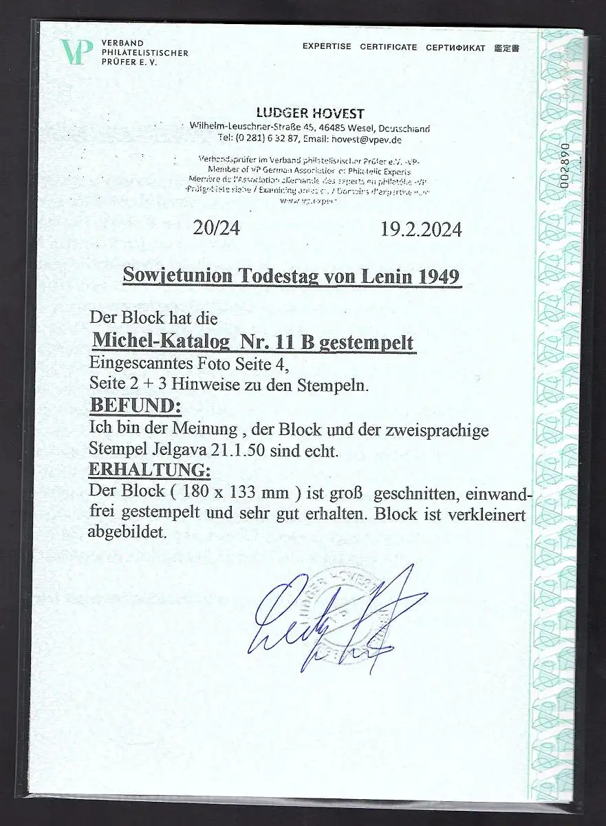 Sowjetunion Block 11 B gestempelt Luxus, FA. Hovest