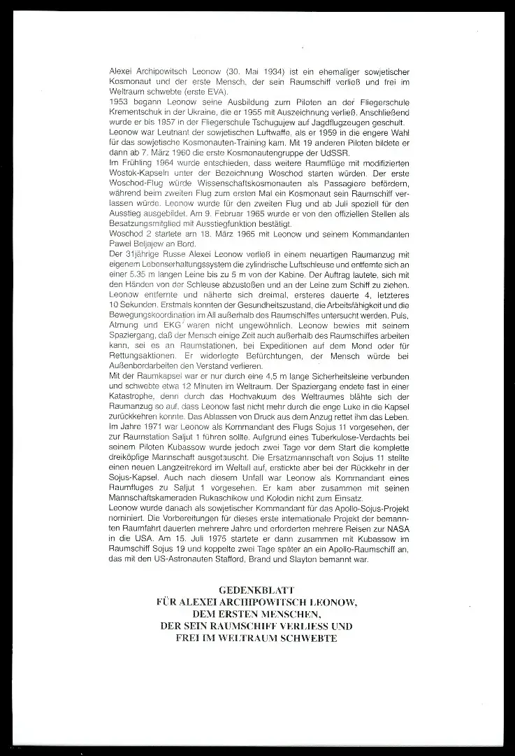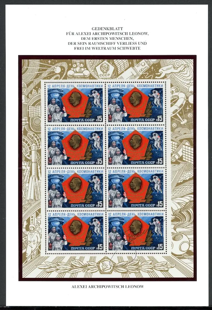 Sowjetunion KB auf Gedenkblatt 5496 mit Autogramm Kosmonaut Leonow #KB513