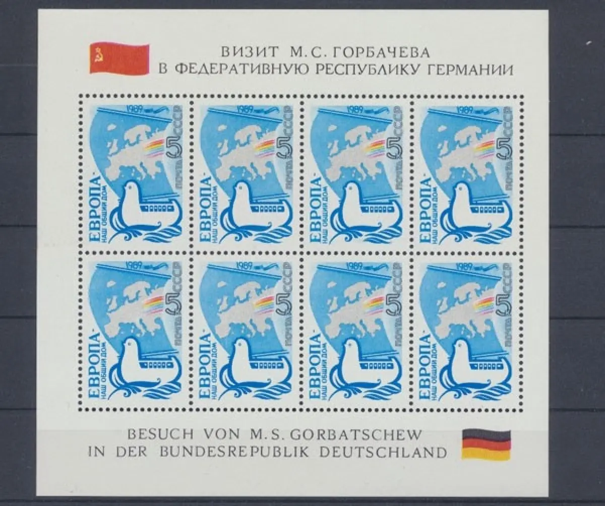 Europa - Besuch von Gorbatschow in der BRD, Kleinbogen mit russischer und deutscher Inschrift.