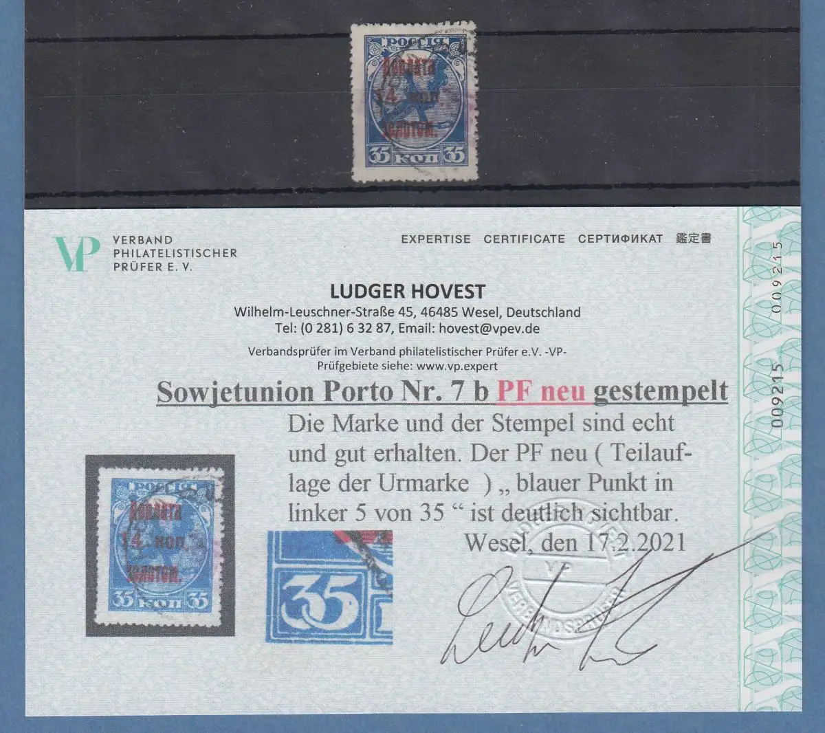 Sowjetunion Portomarke 35K Mi-Nr 7b mit neu-entdeckdem Plattenfehler Punkt in 35