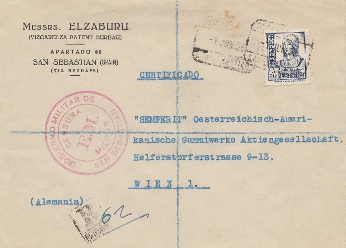 Spanien: 1936: San Sebastian nac Wien, Einschreiben, Zensur