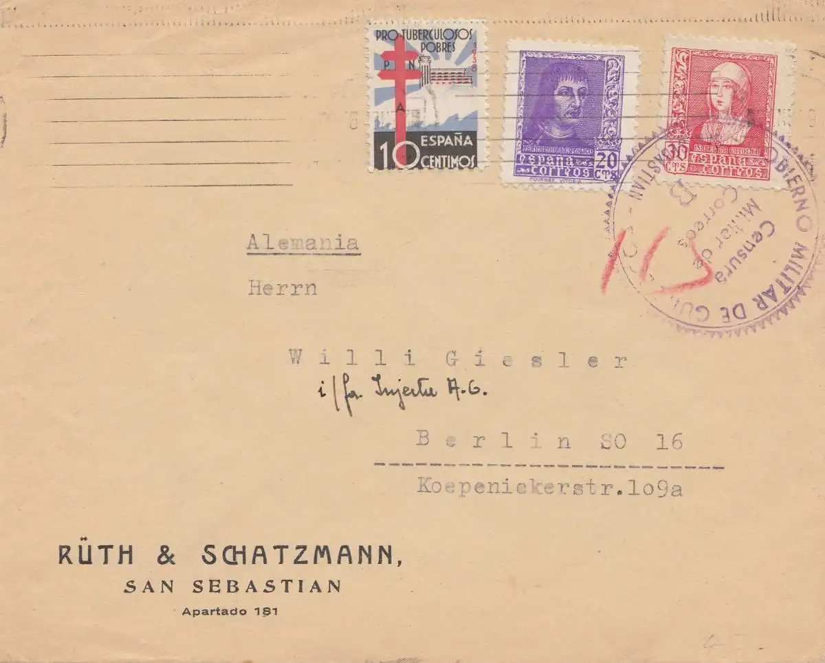 Spanien: 1938: Brief von San Sebastian nach Berlin, Zensur