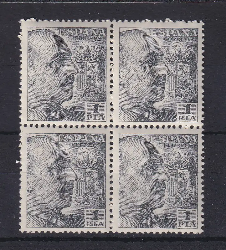 Spanien 1951 General Franco 1 Pta gez. 12-13 Mi.-Nr. 852 C 4er-Block **