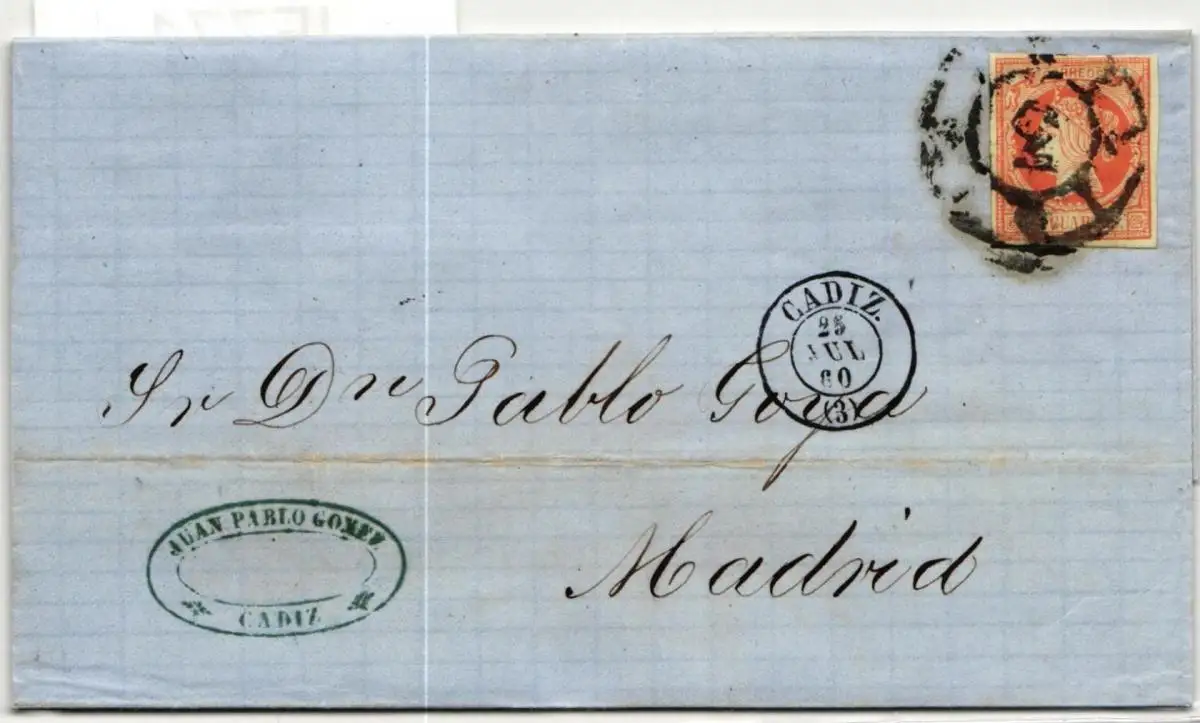 4 Cs. auf Faltbrief von Cadiz nach Madrid gelaufen.