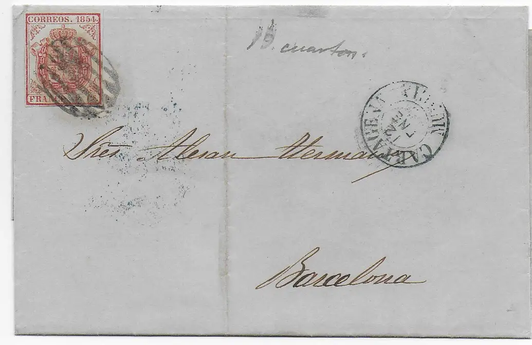 Spanien: Brief von Cartagena nach Barcelona, 1855