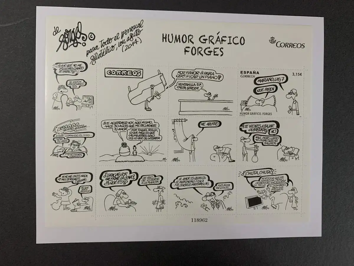 Spanien: Humor Grafico Forges, 2014, 12 Briefmarken, mnh Block #260