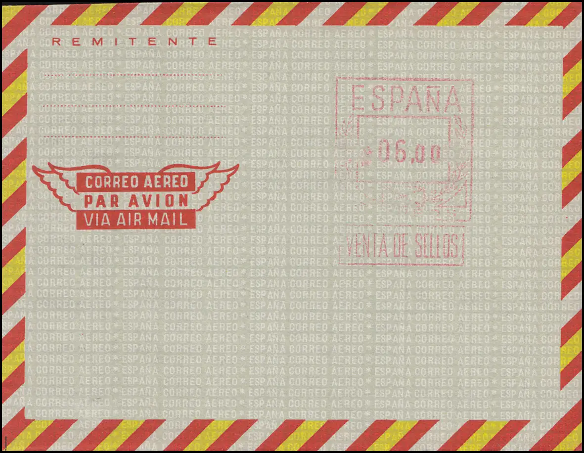 Spanien Luftpostfaltbrief LF 48 Freistempel 6,00 Pesetas, ungebraucht